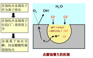 不銹鋼由于材料的不均勻性、應(yīng)力的影響、環(huán)境方面的條件(主要為氯化物離子的存在),部分鈍 態(tài)保護(hù)膜被破壞而產(chǎn)生局部腐蝕。以下為有關(guān)具有代表性的 3 種局部腐蝕,表示其腐蝕的機(jī)理。